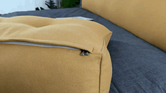 Il rivestimento è completamente sfoderabile. Basta aprire la cerniera della fodera dal basso e far scorrere i bottoni attraverso i fori sulla fodera. Potrai quindi lavare la fodera in lavatrice (o a mano). Consigliamo un ciclo delicato a bassa temperatura. Si prega di asciugare all'aria.